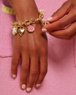 Barbie⢠X Kendra Scott Gold Elaina Satellite Reversible Bracelet In Pink Iridescent Glitter Glass